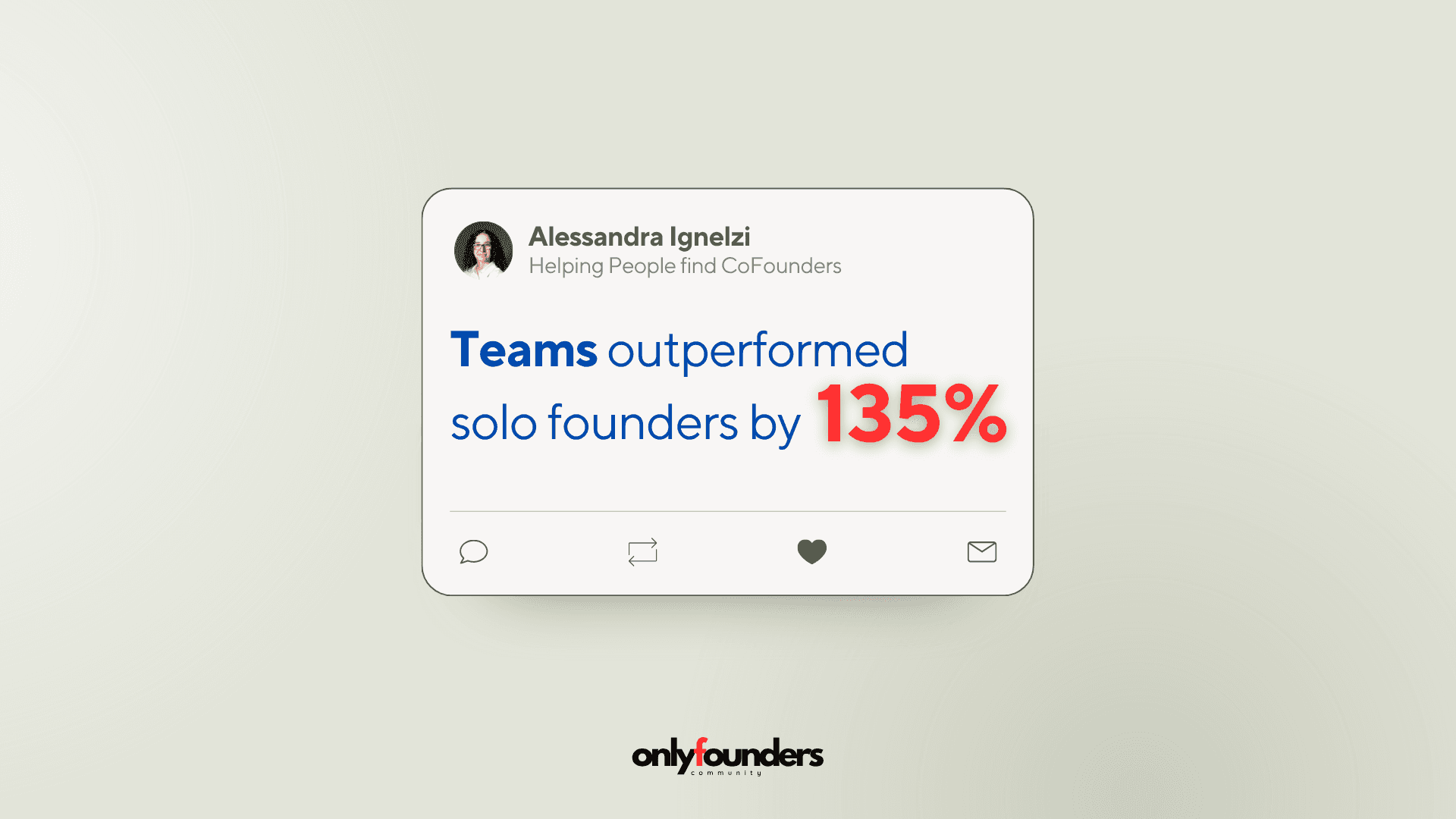 One of the strongest arguments for finding a CoFounder comes from a detailed, decade long study of over 300 companies. The study showed a big difference: founding teams with more than one member performed better than solo founders by a surprising 163% (First Round Capital, 2015).
